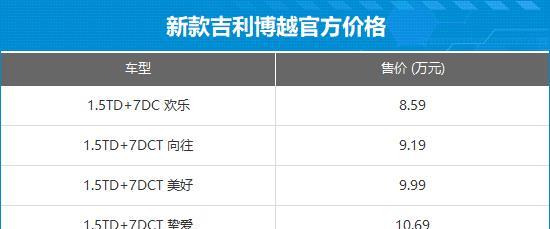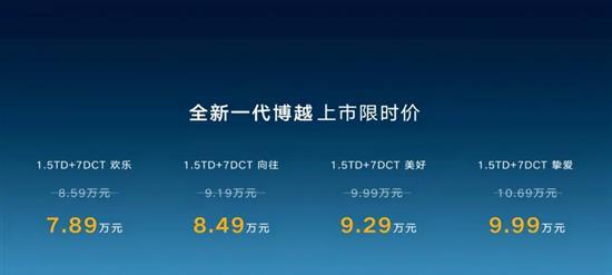 8月17日,新款吉利博越正式上市,此次共推出4款车型,售价8.59-10.69万元,限时售价7.89-9.99万元。此次为中期改款车型,针对外观和内饰进行调整盈通策略,并全系标配Flyme Auto座舱系统。