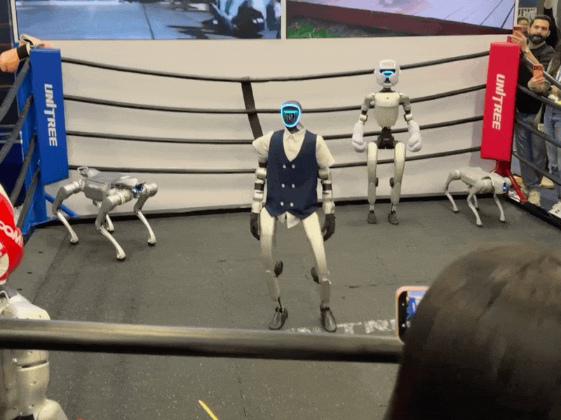 其中,最吸睛的莫过于宇树科技的展台,那里被围得水泄不通。两台人形机器人正在擂台上「真刀真枪」地打拳,动作敏捷,你来我往。而不远处,还有负责倒茶的、能陪你聊天讲段子的,甚至有和工作人员肩并肩演示搬运协作的。