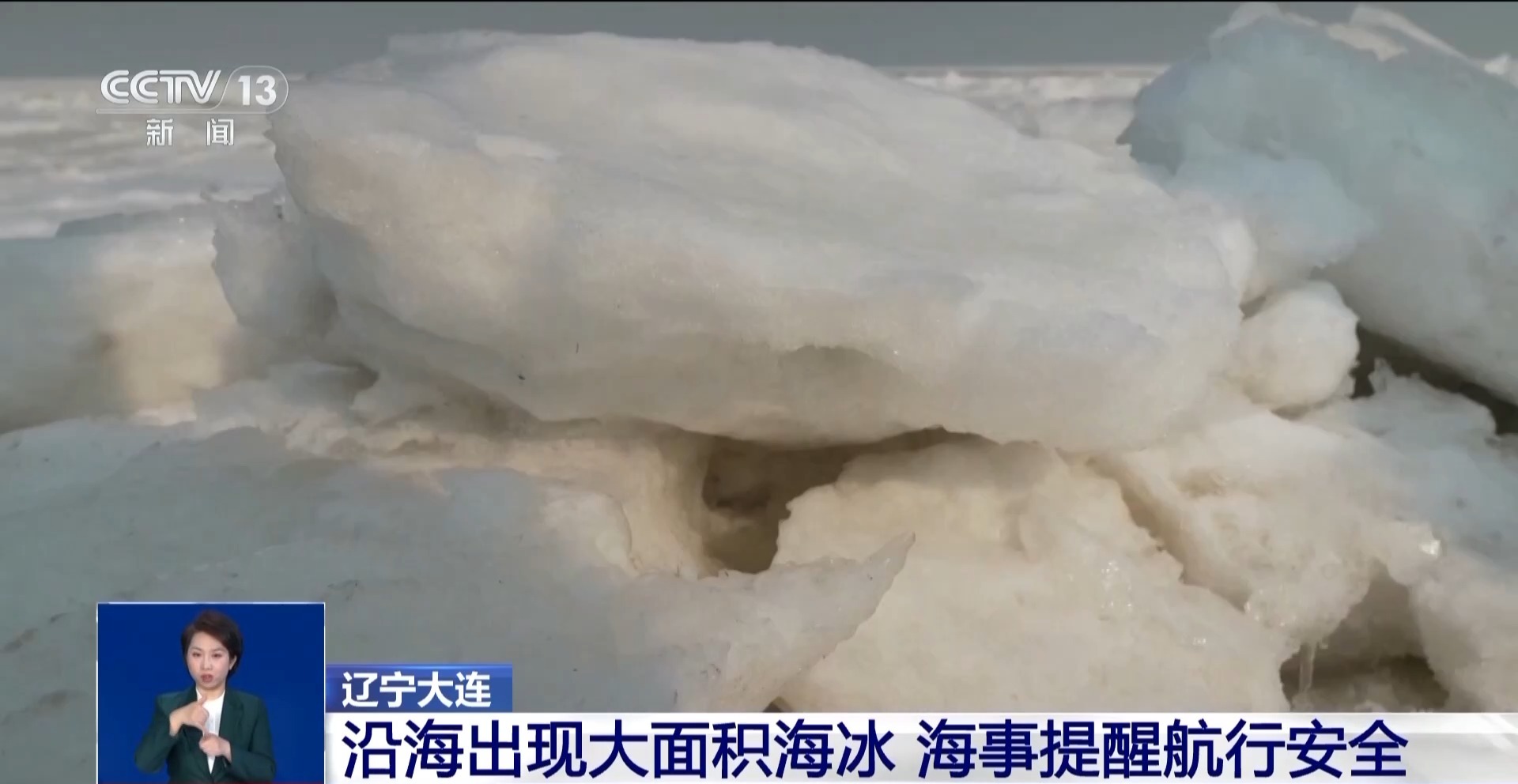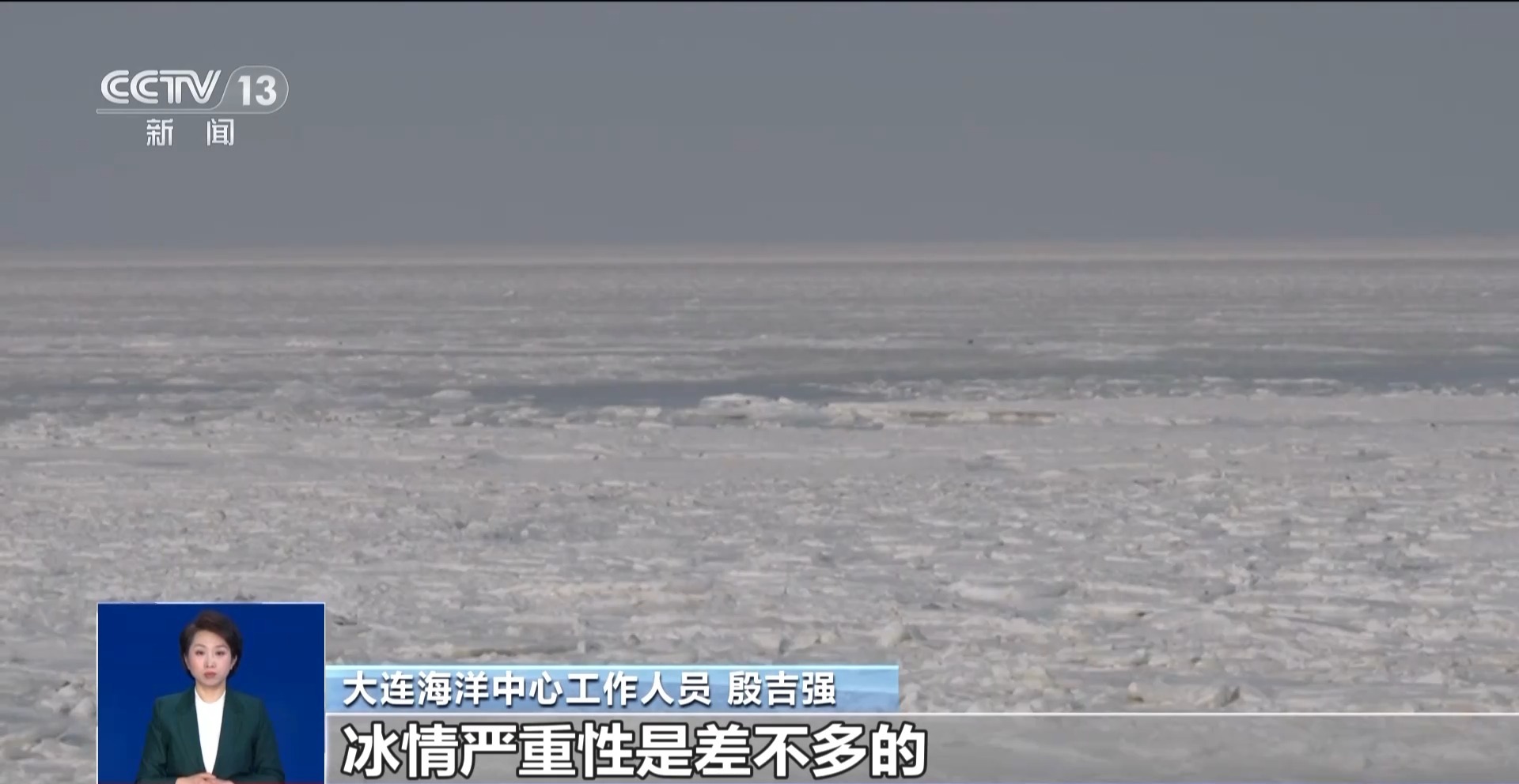 大连海洋中心工作人员 殷吉强:今年的冰情跟去年相比其实没有太大的变化,冰情严重性是差不多的,在未来一周之内不会再有新的冷空气。海冰的面积不会很大幅度增长,海冰的厚度包括硬度都会比较稳定地增加。