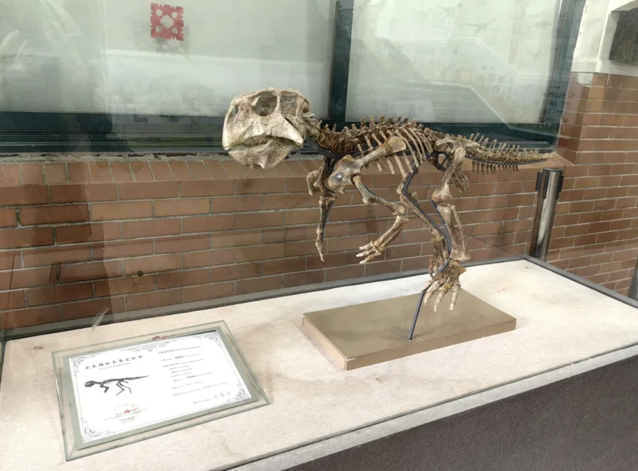 学军小学的鹦鹉嘴龙化石。图片由学校提供
